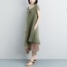 brief cotton gown plus size clothing False Two-piece Short Sleeve Green Plain Dress